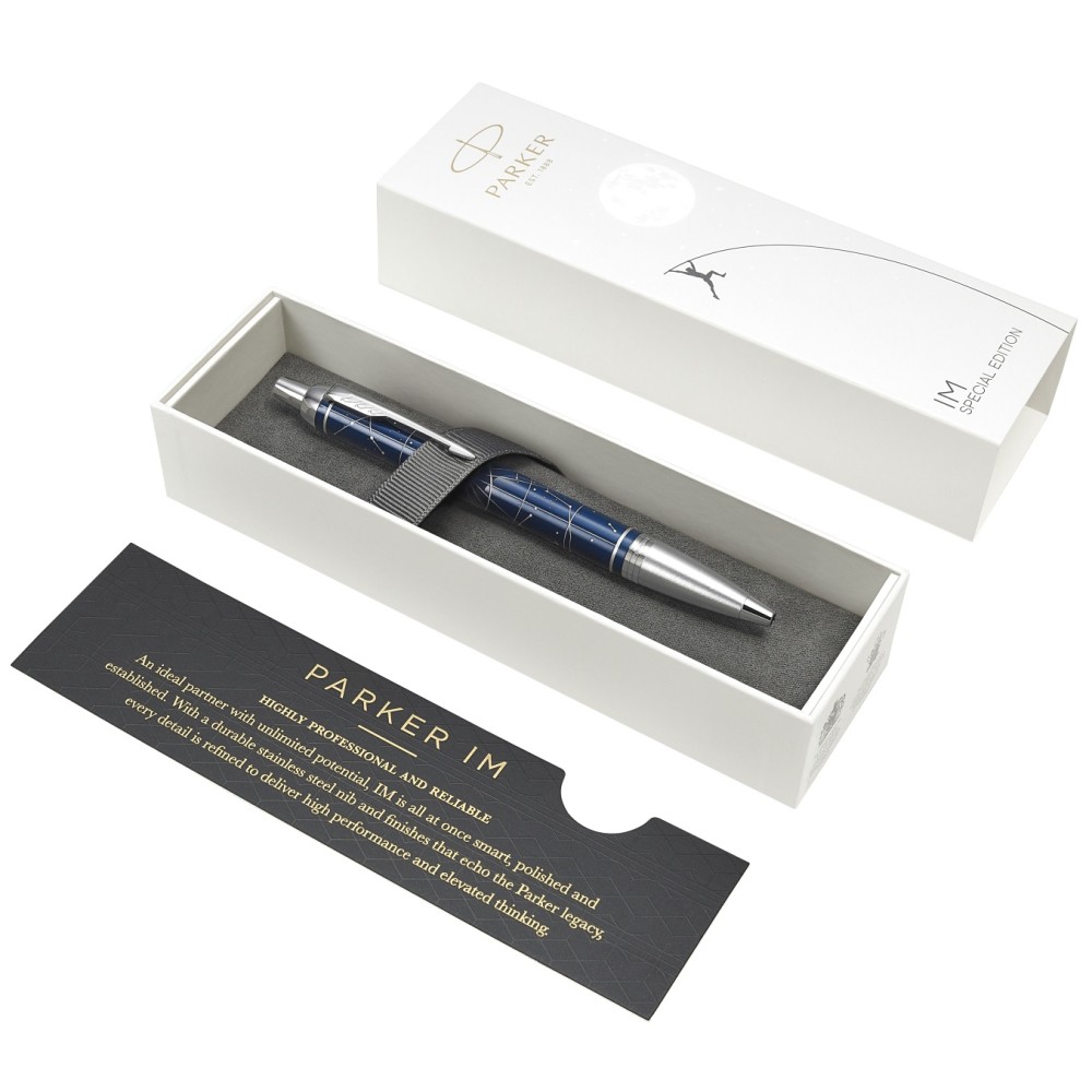 Специальное издание Parker Special Edition 2019 года в премиальной коллекции IM Premium посвящено стремлению человека к познанию космоса, далеких миров и нашего места во вселенной. Каждая серия ручек так или иначе связана с космической тематикой. Корпус перьевой ручки Parker IM SE 2019 Midnight Astral украшен красивым изображением карты звездного неба. Серия Midnight Astral посвящена одной из древнейших наук человечества - Астрономии, которой в настоящее время увлекаются миллионы человек по всему земному шару. Ручка поставляется в специальной подарочной коробке с изображением человека, пытающегося допрыгнуть до Луны. Эта уникальная серия предназначена для активных людей, увлекающихся современными технологиями, астрономией, космической тематикой, а также для всех, кто находится в поиске своего места в жизни, занимает активную жизненную позицию и постоянно стремится достигать новых вершин!